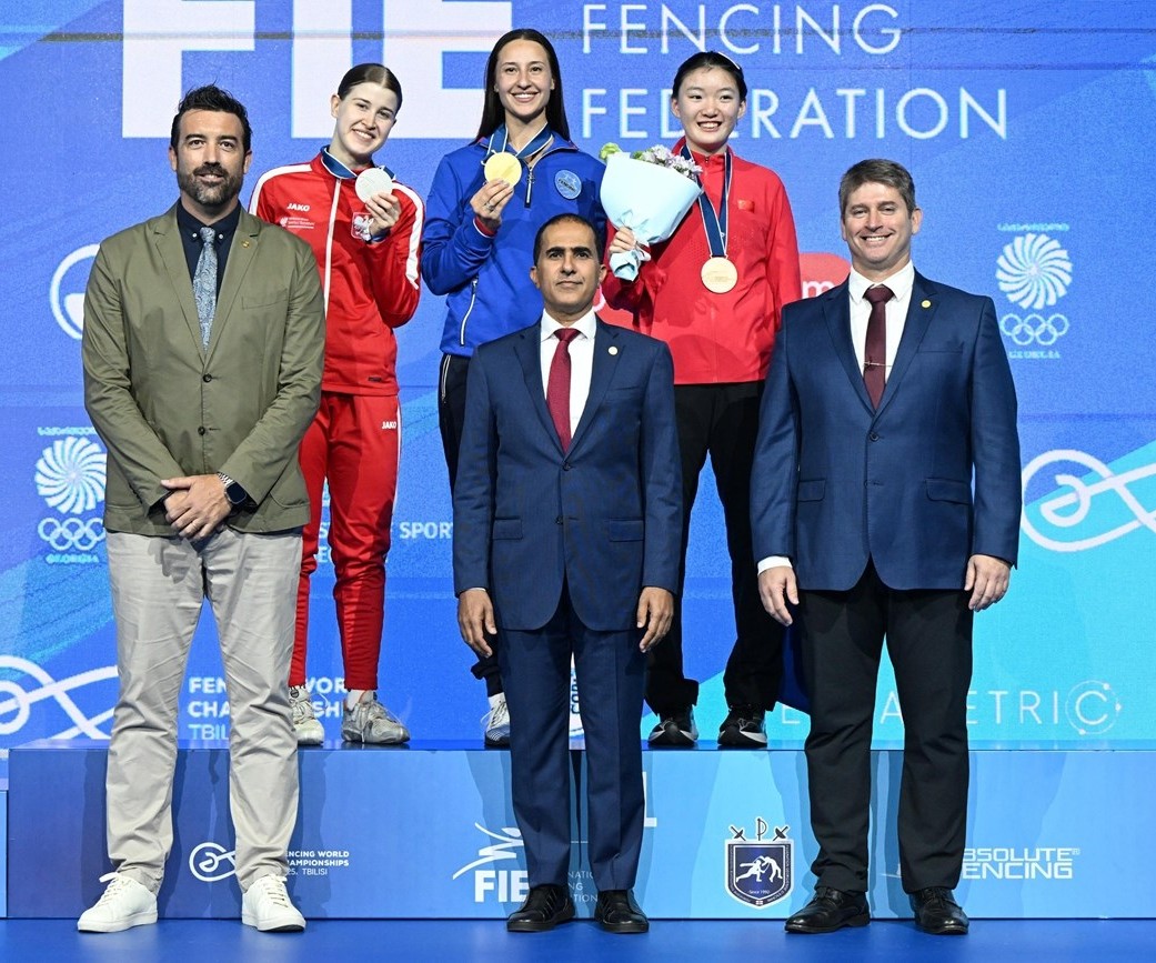 Sheikh Salem bin Sultan bin Saqr Al Qasimi, President of the Asian and Emirati Fencing Federation and member of the Executive Board of the International Fencing Federation, witnessed the crowning of the winners at the World Fencing Championships currently being held in the Georgian capital Tbilisi, which will continue until July 30.